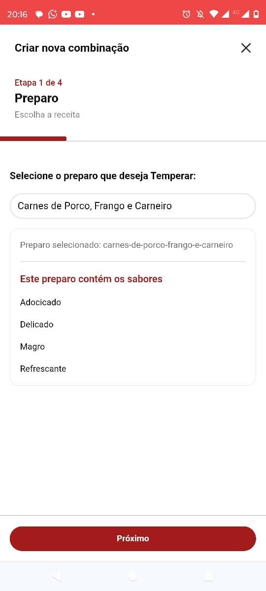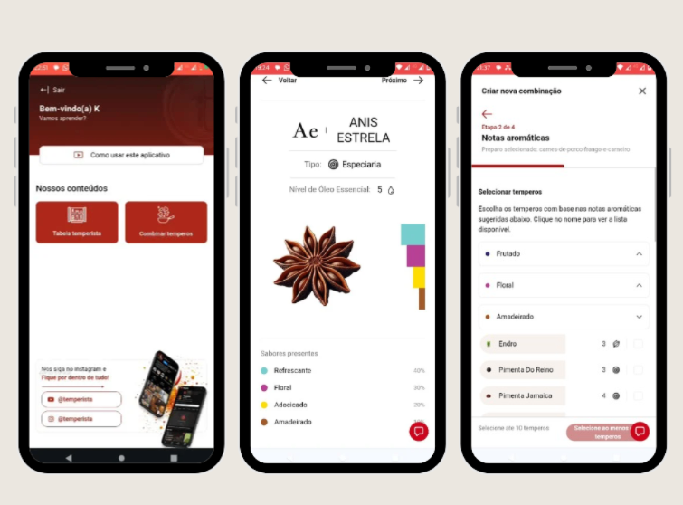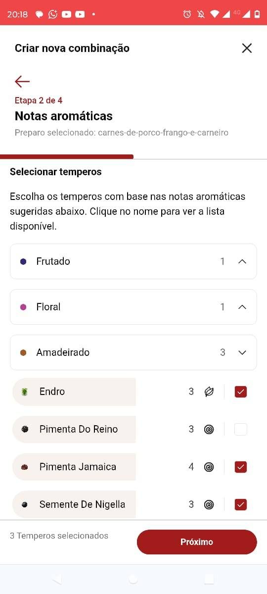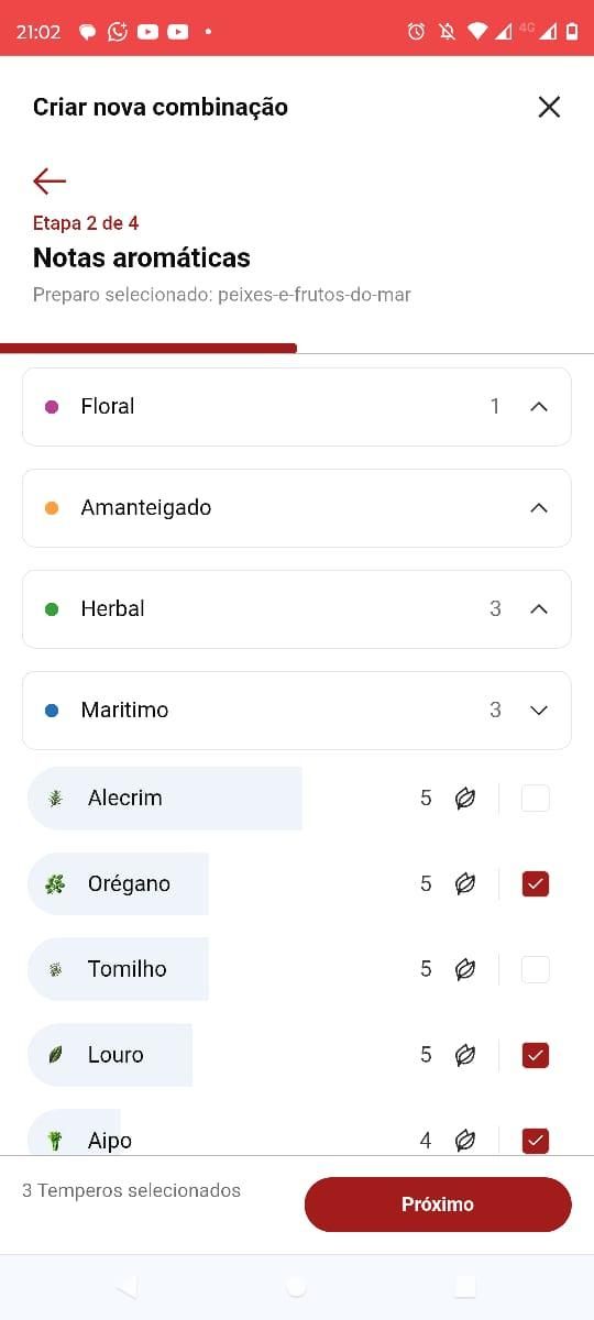 2) Passo: O Aplicativo vai indicar os temperos com os sabores que melhor combinam com o preparo selecionado