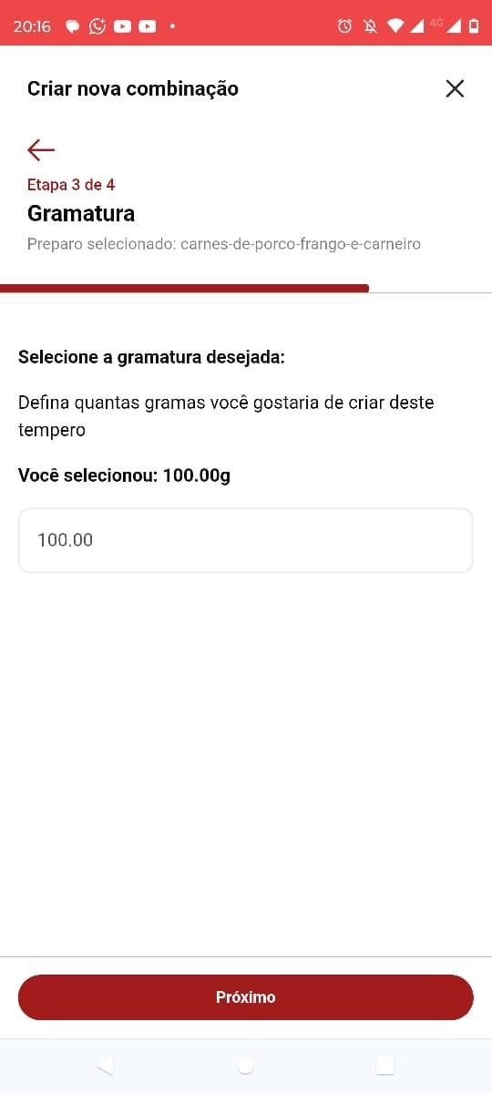 3) Passo: Digite a quantidade em gramas que você deseja criar da sua mistura