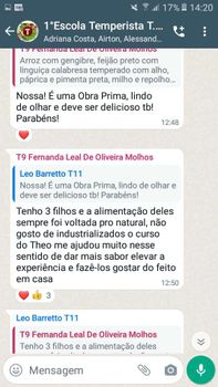 Um Grupo aberto para troca e conversas e outro fechado para avisos importantes. Em ambos, você tem acesso ao nosso suporte direto, a Luiza, e o Chef Theo Gomez também está presente.