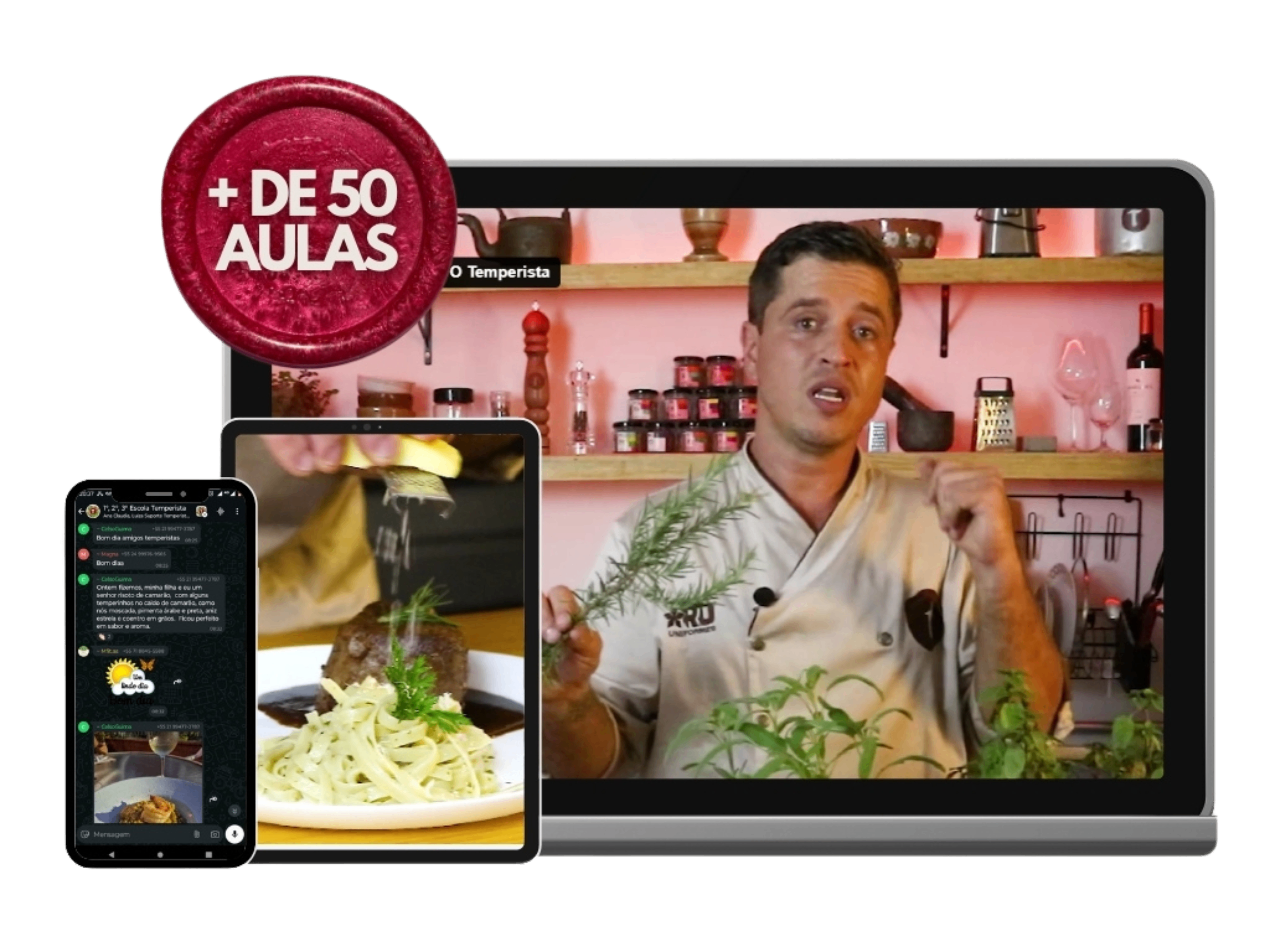 Além do Curso, você terá acesso a comunidade no WhatsApp e facebook. Lá todos os alunos trocam dúvidas, ideias de pratos e receitas.