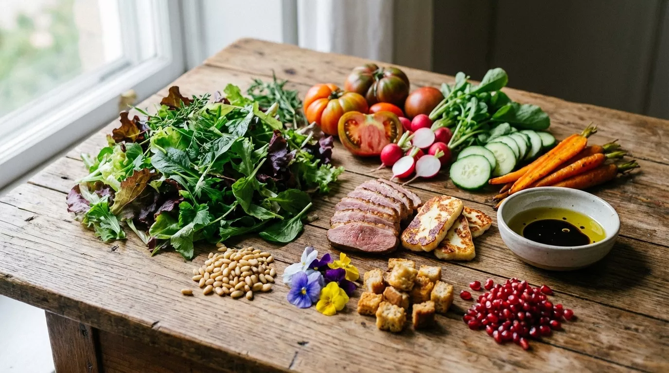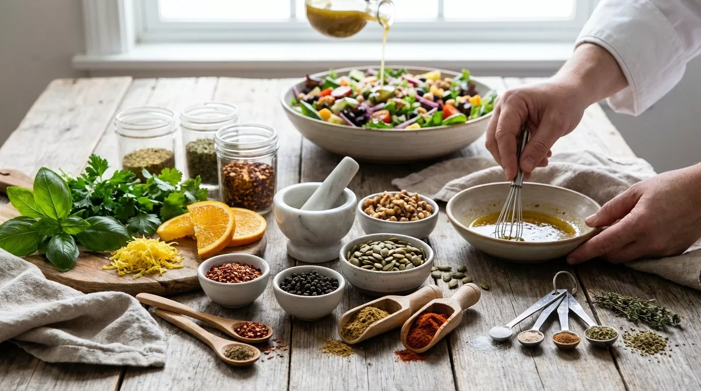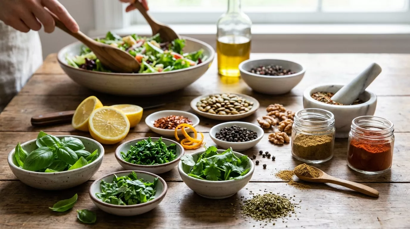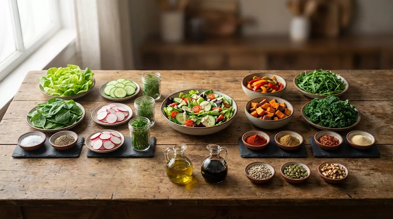 Entenda como montar, equilibrar e temperar saladas quentes e frias com precisão usando um método simples e inteligente.